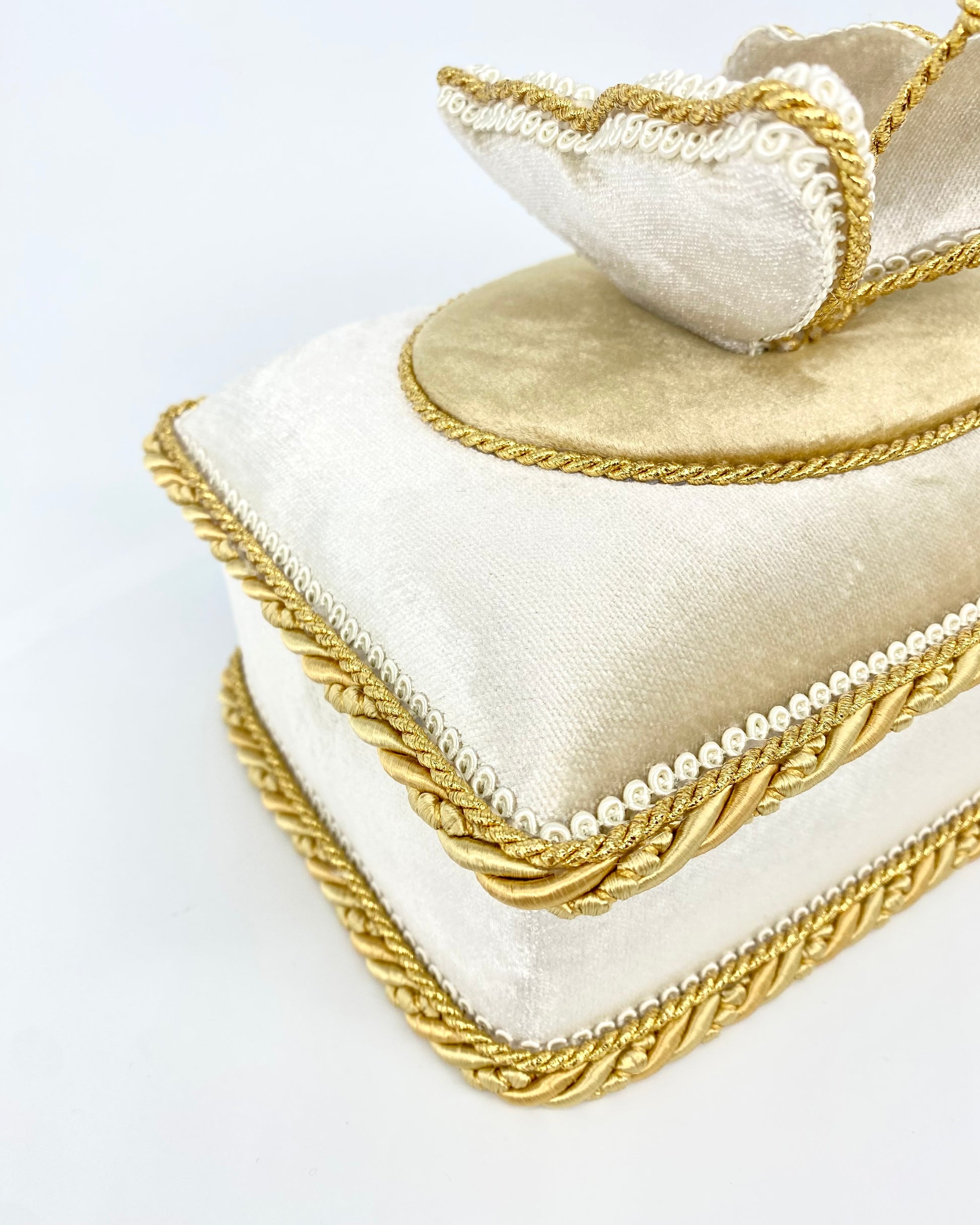 Dėželė yra pagaminta naudojant aukštos kokybės audinius ir dekoratyvines juosteles. Ši elegantiška interjero detalė suteiks namams išskirtinio stiliaus ir prabangos pojūtį.